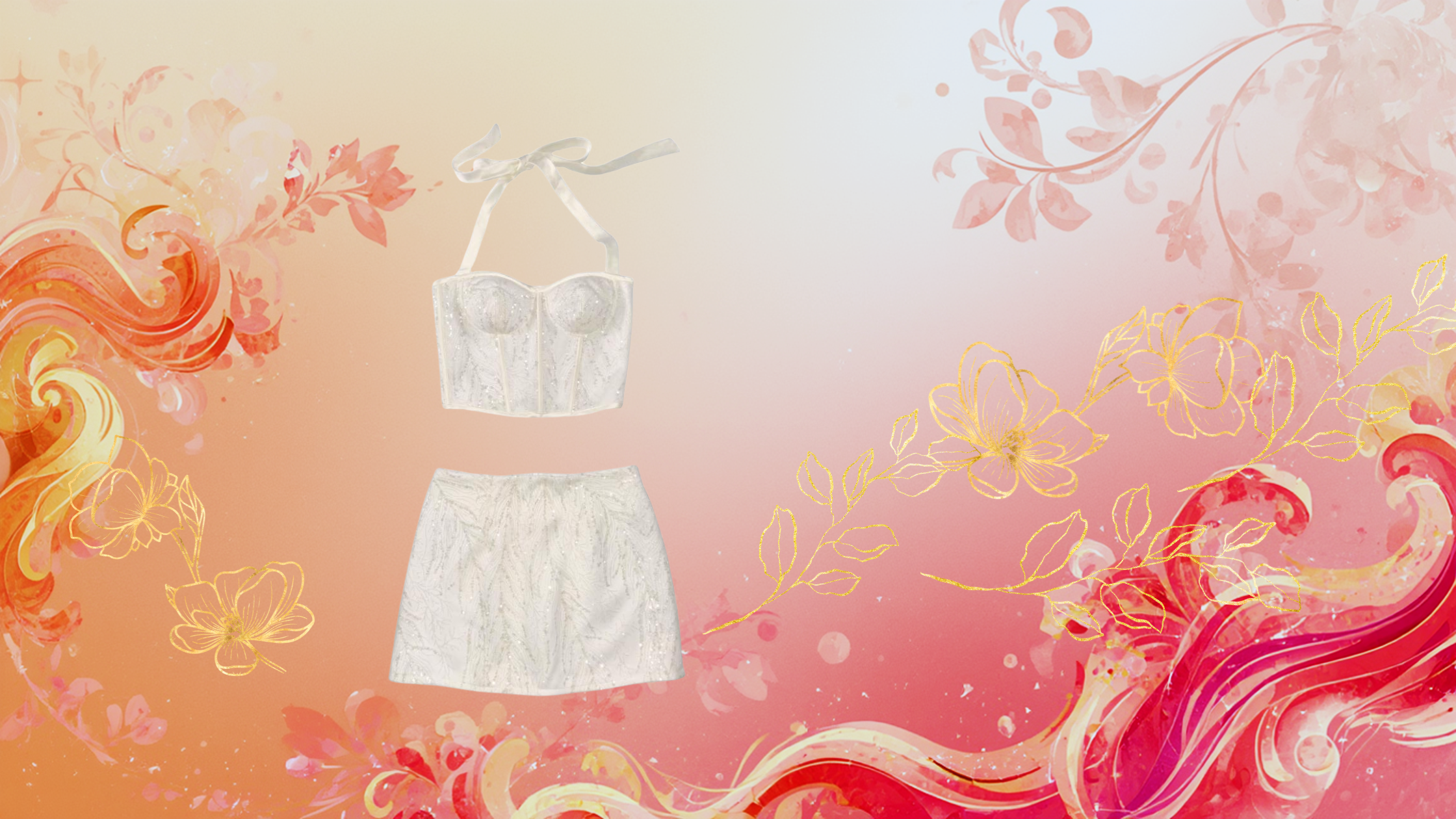 GOLDEN FLEUR HALTER MINI DRESS